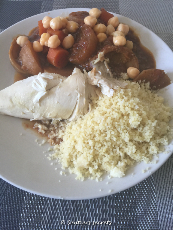 Bravo Julia, c’est réussi. J’ai adapté la recette pour 2 personnes car nous ne sommes plus que 2 à la maison et j’ai fait avec les réserves du placard. J’ai rajouté du smen, beurre clarifié salé utilisé au Maghreb qui donne ce goût si particulier. J’ai également modifié les temps de cuisson pour avoir des légumes cuits à mon goût.