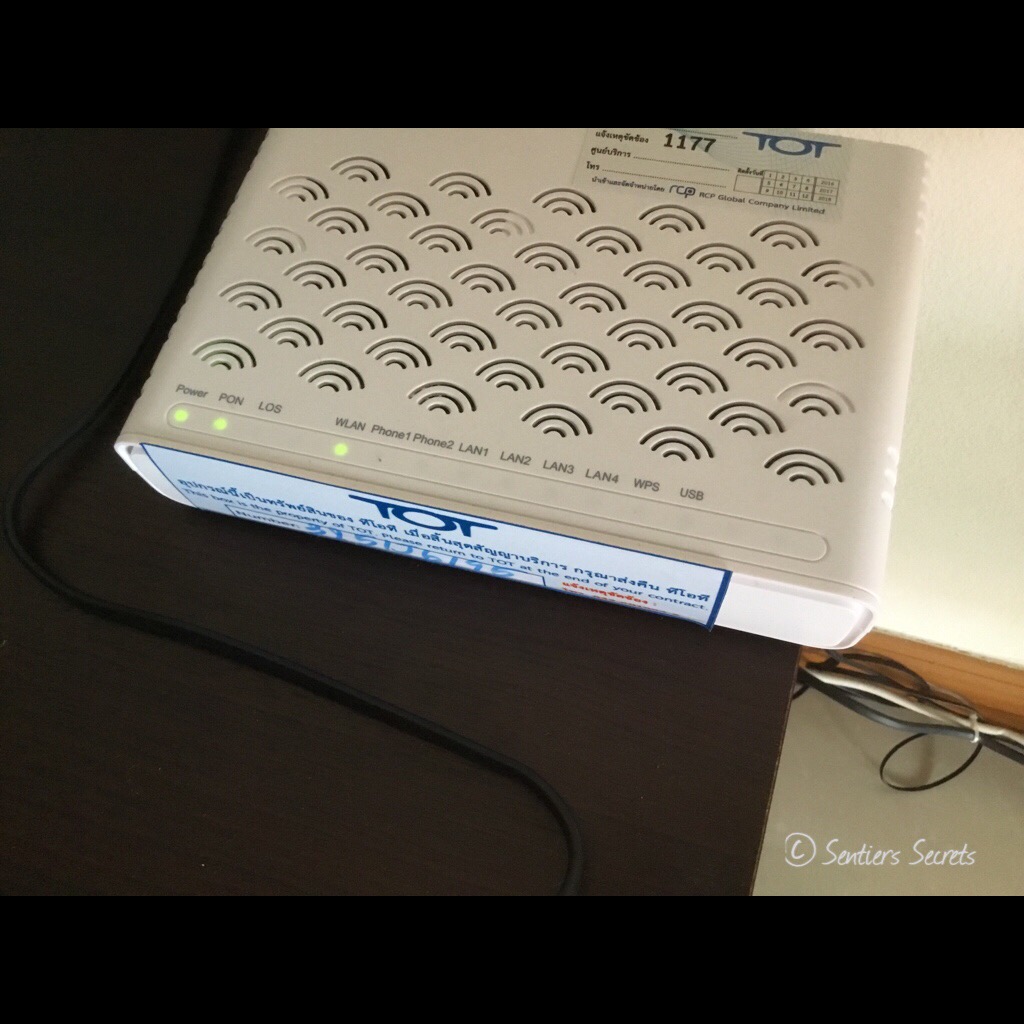 Ma charmante voisine, Noon, me signale que ToT, Telephone of Thailand, est en train de passer la résidence à la fibre optique et que ceux qui la choisissent de suite sont exempté de coûts d’installation. Je n’ai pas réfléchi longtemps. Pour 2,50 euros de plus par mois, je vais passer de l’Adsl, acronyme Thaï qui signifie internet qui avance à la vitesse d’un escargot rhumatisant et cacochyme, à la fibre optique qui devrait m’offrir une bande passante plus confortable.