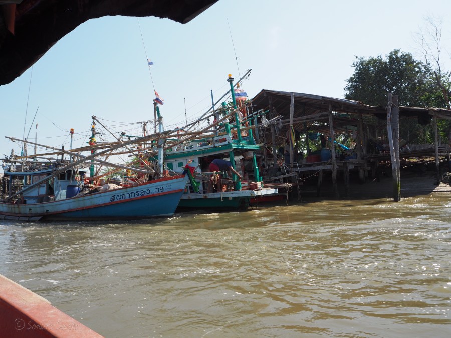 Cette promenade en « longue queue » dure environ une heure. On commence par remonter le bras de cette mangrove vers le nord. A marée basse, vous y verrez des poissons qui marchent hors de l’eau à la recherche de leur pitance, des varans ou des iguanes (enfin bref, de gros lézards…), des oiseaux, des singes… Bref, dépaysement assuré. La barque fera demi-tour puis ira vers la mer, traversant un village de pécheurs, et enfin retour à l’embarquadère.