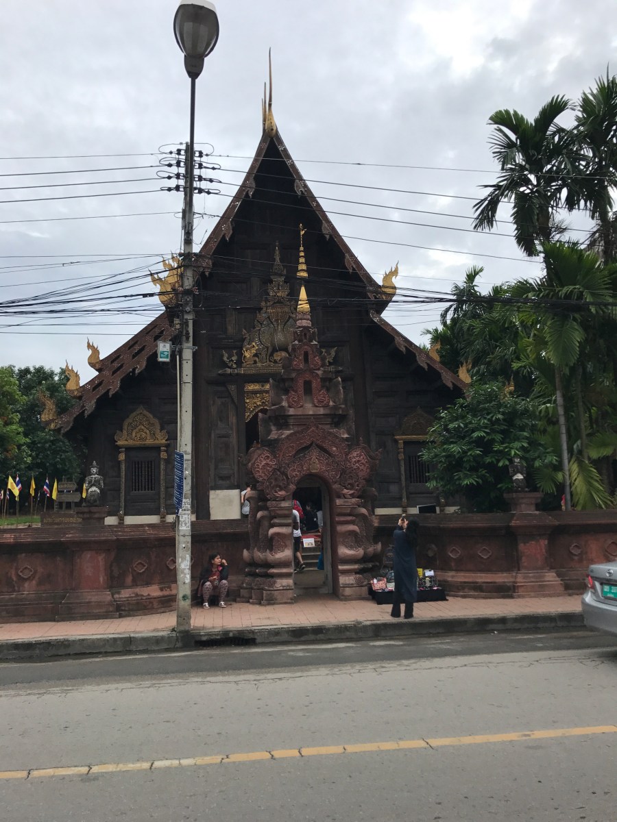 Wat Phan Tao. Il est situé à quelques minutes à pied de notre hôtel. J’ai une affection toute particulière pour l’endroit et je vais le voir chaque fois que je passe à Chiang Mai. Sa construction remonterait au 14ème siècle. Le nom Phan Tao, signifiant mille creusets, indique que ce temple devait être équipé de fours de fonderie pour couler les représentations du Bouddha.