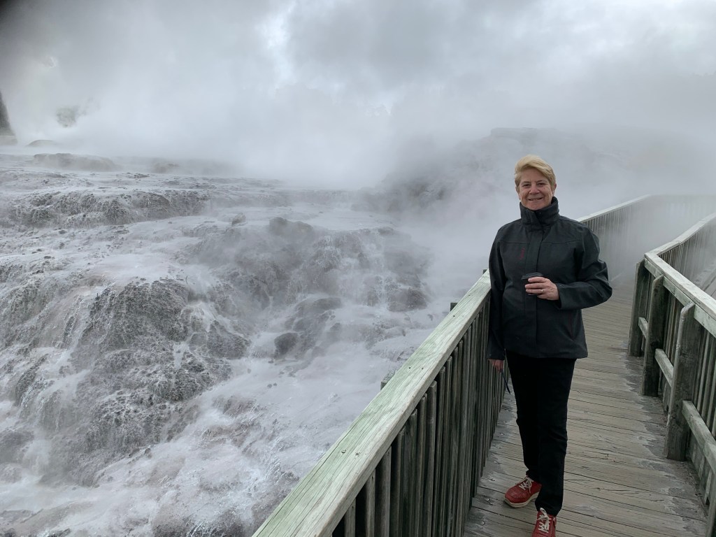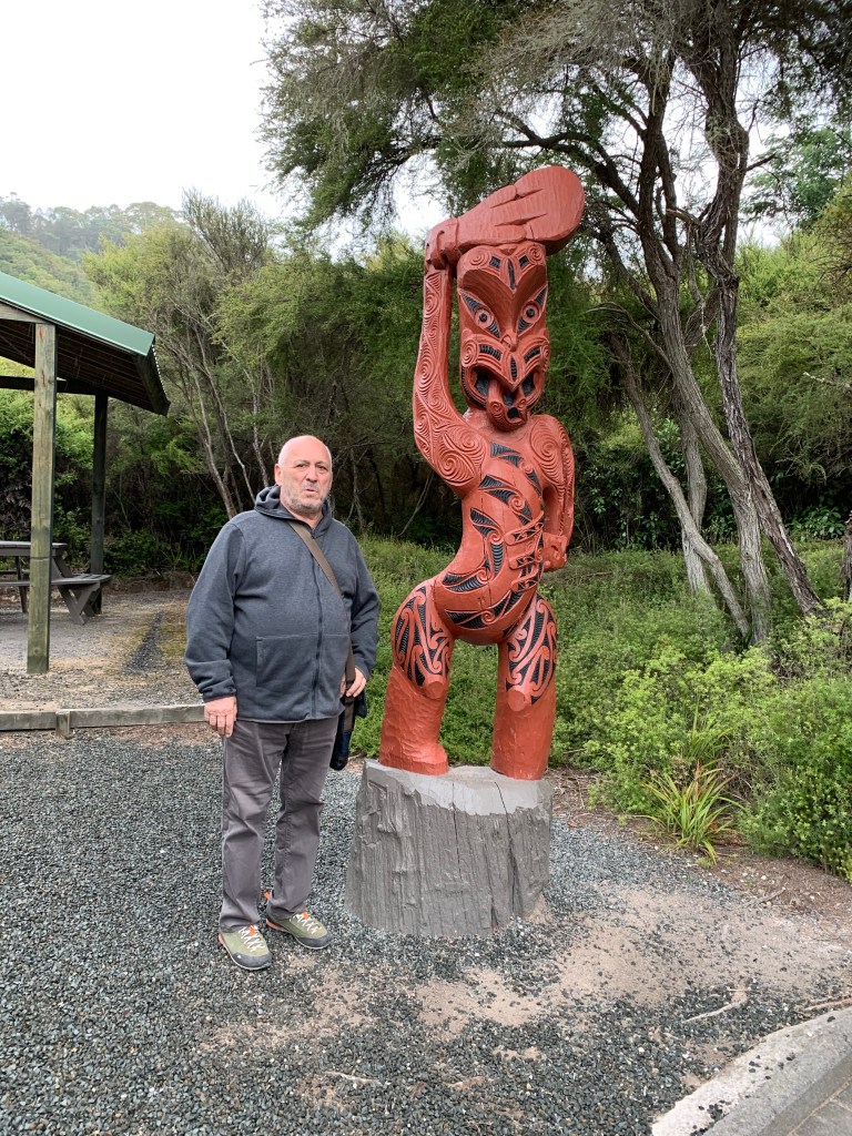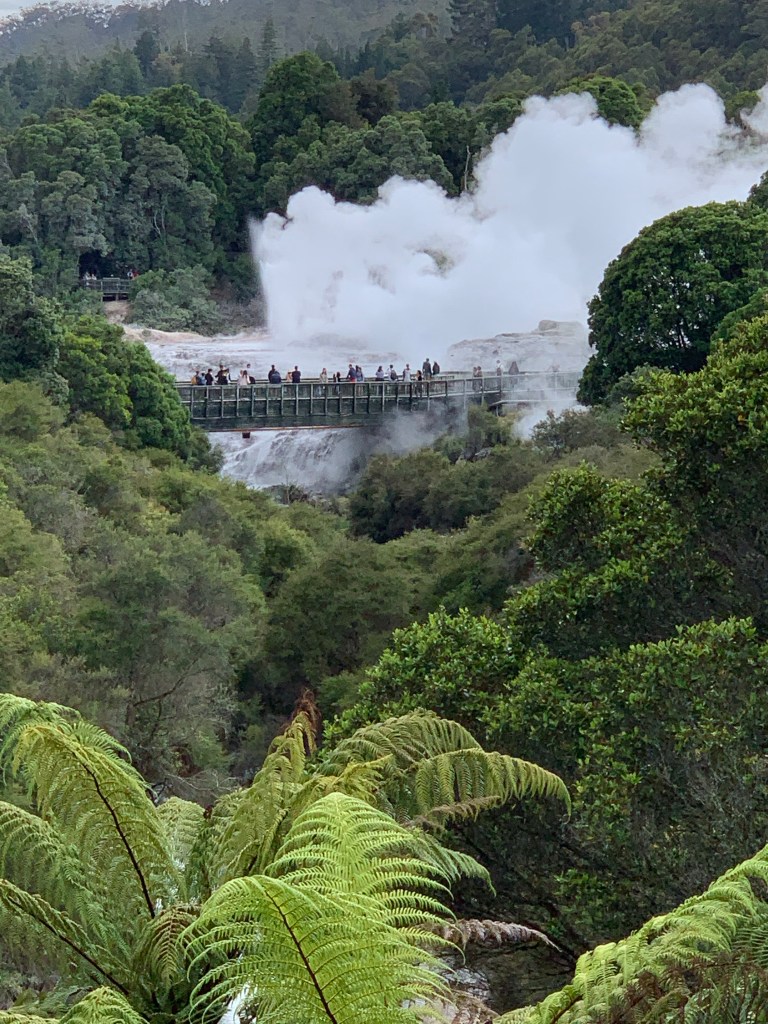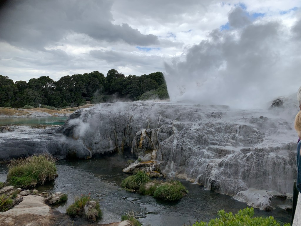 Nous avons profité de l’après-midi pour visiter Te Puia. C’est à la fois une réserve thermale et un centre culturel Maori. On y trouve de nombreux geysers et sites où sont expliqués la formation du lac de Rotorua. Les explications scientifiques cohabitent avec la légende maori.