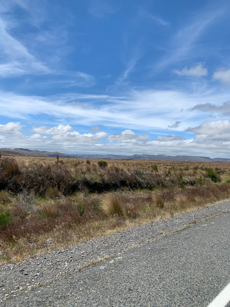 Après Taupo, nous avons traversé le désert de Rangipo. Ce n’est pas réellement un désert puisque les précipitations y sont relativement importantes, mais ça y ressemble fortement à cause des sols pauvres et des vents forts et desséchants.